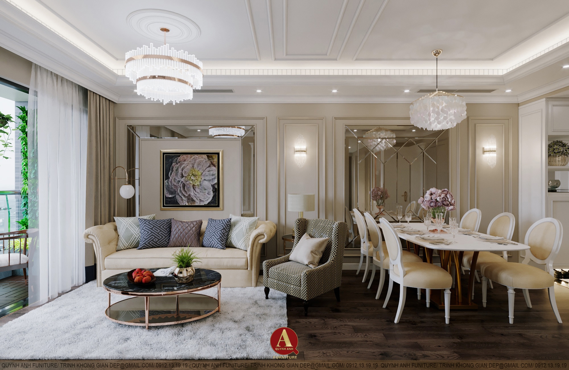 Với phong cách nội thất tân cổ điển, tông màu trắng be là chủ đạo, đường nét thiết kế nội thất mang sắc thái hoàng gia khiến không gian sống căn hộ chung cư trở nên quý phái, sang trọng đúng nghĩa cư dân Royal City. Các hạng mục nội thất có các chi tiết trang nhã, trau chuốt không rườm rà, mỗi khu vực có điểm nhấn ấn tượng riêng.